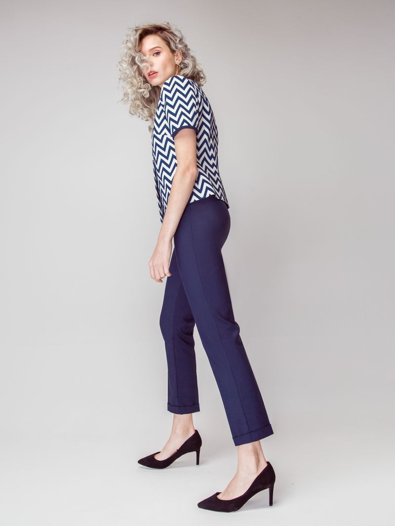 Застежка фронтальная потайная на пуговицы. По краю горловины и низу рукава кант из отделочной ткани.